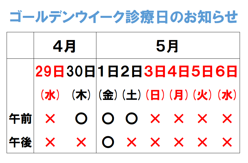 ゴールデンウィーク診療日のお知らせ