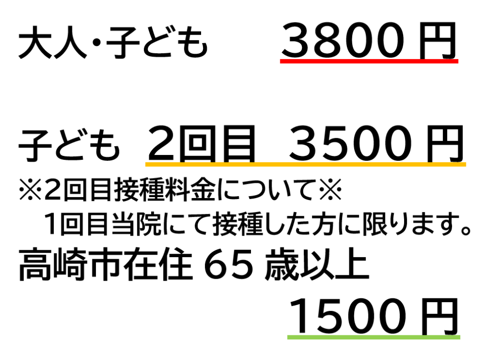 10月よりインフルエンザワクチン・コロナワクチンの接種を開始いたします。インフルエンザワクチンはご予約不要です。コロナワクチンは事前にお電話にてご予約をお願いいたします。 ~インフルエンザワクチン料金~ ~コロナウイルスワクチン料金~ ※詳しくは当院までお問い合わせください。